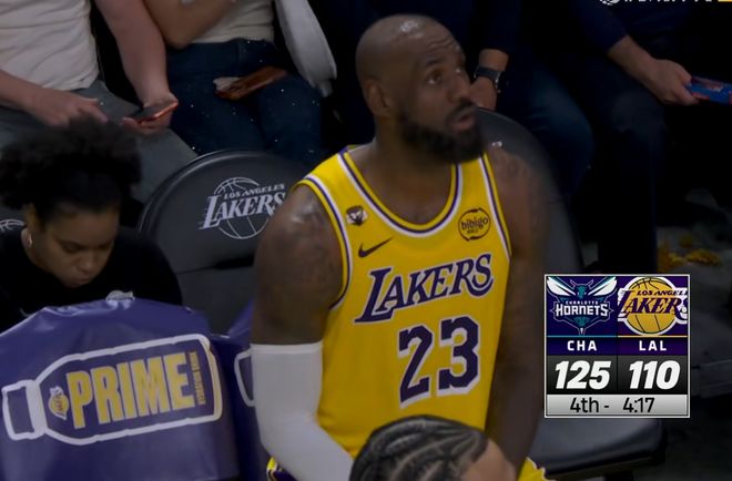 当时湖人被黄蜂打的提前换主力投降,比赛也已经进入到垃圾时间,还剩下两秒的时候,詹姆斯起身看了一眼球场,最后直接返回球员通道了,他当时连衣服都已经穿好了,而此时黄蜂队的球员还在挨个和湖人球员拥抱,甚至连东契奇走之前,都上去和对手击了个掌。而詹姆斯站起来看了队友一眼,二话不说扭头走回球员通道,对于自己队伍的表现是非常不满意的。
