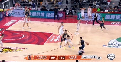 第一节广东队上来就被上海的一套内外连线+跑轰反击直接打懵,第一节进行到还剩3分47秒,广东队已经落后上海20分,杜锋再次准备换人,焦泊乔来到场边候场。
