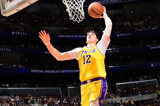 本场比赛中,湖人虽然输掉了比赛,但是球队的先发锋线新星杰克-拉拉维亚(Jake LaRavia)的表现其实还算不错。拉拉维亚全场出场37分07秒,投篮10中6,三分线外4中3,罚球5中5,得到了18分3篮板3助攻2抢断的数据,还有2次失误和2次犯规,正负值为-6。拉拉维亚也算是保持了不错的外线投篮手感,他的出手次数其实并不多,但是他也是抓住了机会得到了不少分数,起到了很好的效果,他甚至还展现出了一定的传球能力和策应能力,他在进攻端的作用非常全面。拉拉维亚在防守端也同样起到了一定的作用,同样发挥出了自己在防守端的能力。拉拉维亚在本场比赛中算是很好地扮演了3D锋线的角色,只是作为一名角色球员,他确实是没有办法为球队提供更多的支持了。
