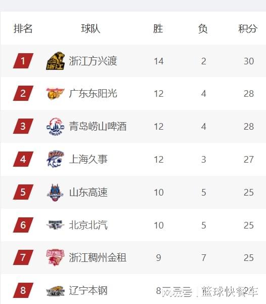 附:CBA积分榜最新排名