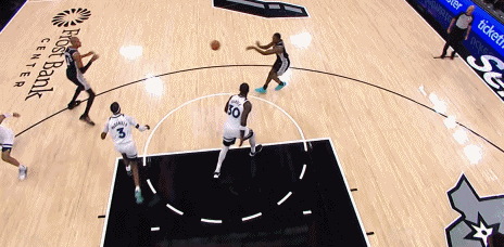 马刺第二节单节48分,单节赢了森林狼26分,半场69-44。