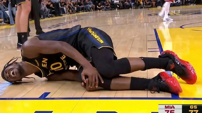 下半场比赛开始,易边再战,阿德巴约的蜻蜓点水补篮揭开第三节比赛序幕,库里变向突破如狼似虎,飞身抛投还以颜色,理查德横移一步的大号三分球一箭穿心,巴特勒突击内线制造杀伤,站上罚球线两罚全中,鲍威尔一个闪电突破,平民上篮终结擦板得分,波杰姆斯基的超远三分球洞穿篮心。到第三节比赛中段,勇士遇到坏消息,巴特勒在一次进攻下落时意外扭伤膝盖痛苦倒地,随后在队友搀扶下离场,此前他的右膝盖就两次重伤过,2018年半月板撕裂和2024年内侧副韧带扭伤。如果这一次伤病不乐观的话,勇士靠库里单核带队真的太难了。