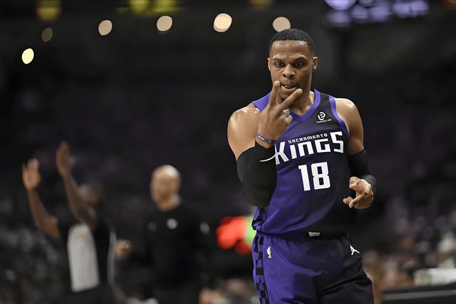 尽管本赛季的国王队,目前的战绩仅为12胜33负,排在了西部的倒数第二位,基本没有冲击季后赛的希望。但这支球队之中,还是有不少球迷们熟悉的面孔,扎克·拉文、德马尔·德罗赞、多曼塔斯·萨博尼斯以及今天的主人公拉塞尔·威斯布鲁克,他们曾经都是全明星球员和所在球队的核心,但如今,却因为年龄的上涨、伤病的积累等原因,已经不复当年之勇。但毕竟瘦死的骆驼比马大,他们的经验和技术都还在,所以仍旧有不俗的表现。