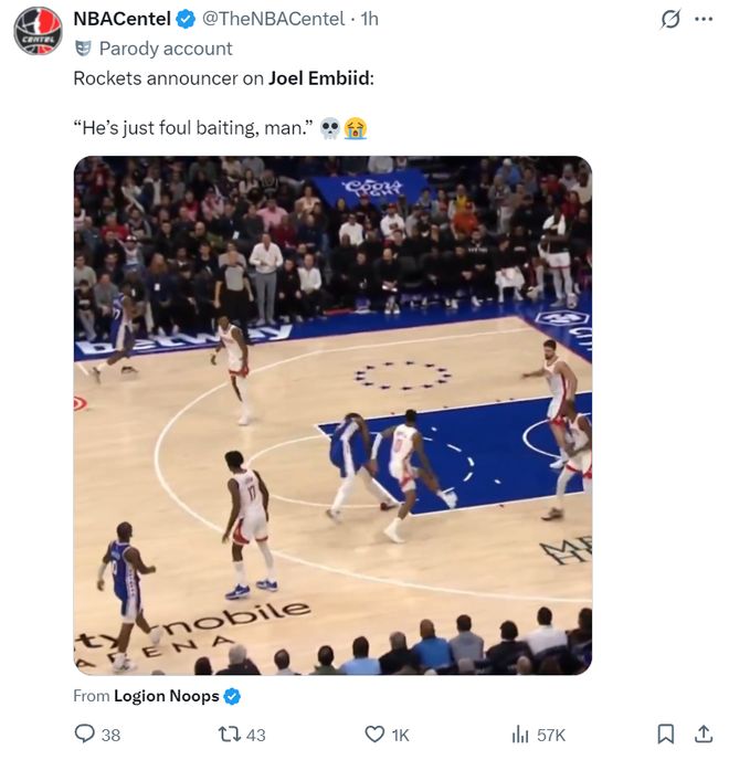美媒也吐槽:火箭解说员说恩比德纯粹是故意碰瓷!