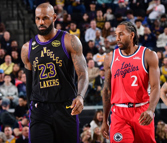 LAL无愧是洛杉矶华佗队,小卡此前在对阵活塞时候连续被奥萨尔、里德两人都撞击了左膝,随后小卡进入伤病名单缺席了三场比赛,这场洛城德比之前小卡就升级成可以出战,伦纳德一登场就展现了超强的竞技状态,6分钟里三分3中2拿8分2篮板,面对勒布朗的防守中投也命中。