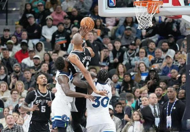 这主要是因为马刺队有文班亚马的存在,每次爱德华兹和森林狼队要起势的时候,文班亚马都会做出回应,在肘区面对严防死守的时候稳稳命中跳投,在三分线外命中三分球,在胜利的天平向森林狼队倾斜的时候,他一再依靠个人表现稳定住马刺队的攻防体系。在这场比赛中,爱德华兹和文班亚马合计得到94分,是自1966年现代选秀时代开启以来状元秀之间对决的最高得分。
