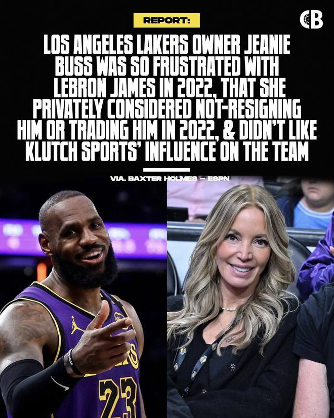 报道中指出「湖人队老板珍妮·巴斯对勒布朗·詹姆斯感到不满,私下里称他忘恩负义、自私自利且控制欲强,妄图控制湖人队」
