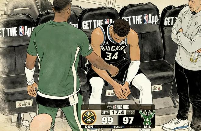 字母哥受伤一刻发生在最后2分钟,当时雄鹿正在起势,缩小分差,字母哥突感不适被换下,坐在替补席的他满脸沮丧,随后一瘸一拐地走回更衣室;由于心系球队,不久后他又回到场边观战。