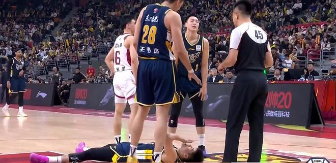 后半节潘江换回迪亚洛刘传兴,2分10秒,徐杰争防守过程中出现崴脚,李文昊也被迪亚洛肘中脖子倒地不起,广东一回合倒下2人,实在是惨。
