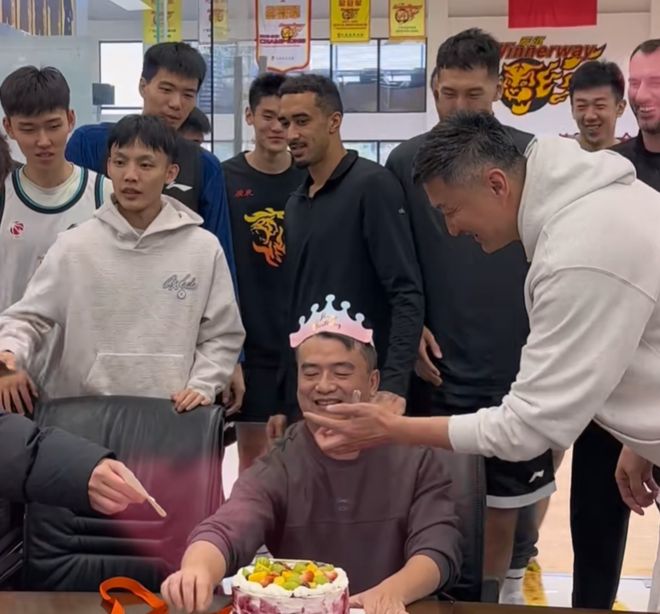 凝聚力拉满!广东为林医生庆生!杜锋讲话致敬,球员砸蛋糕未果!