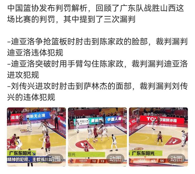 其实,裁判对于迪亚洛已经足够照顾了,前三节领到4犯,第四节在广东和山西两队陷入多次犯规冲突的情况下,身背4犯的迪亚洛仿佛开了金身,6分钟时间一次犯规都没有,比赛临近结束阶段,有点杀不动的迪亚洛早已没有战意,场上哨声响个不停,迪亚洛一度以为自己犯满了打算要离场,不料裁判却把他又叫了回来执行罚球,相当讽刺。