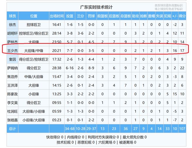 那么,广东队为何能够赢下这场比赛呢?可以说,一个人是息息相关的,没错,他就是内线球员王少杰。本场比赛,王少杰首发出场打得十分活跃,不管是在进攻端,还是在防守端,都是打出了十分主动,十分有效。特别是在进攻端,打出了超级高水平,7投7中,投篮命中率达到了百分之百,十分恐怖。