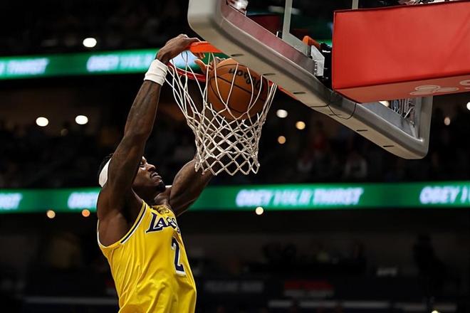 本场比赛中,湖人的替补锋线大将贾里德-范德比尔特(Jarred Vanderbilt)的表现算得上是令人眼前一亮。范德比尔特全场出场12分29秒,投篮6中3,三分线外3中2,罚球2中0,得到了8分4篮板2助攻1抢断的数据,还有1次犯规,正负值为-4。范德比尔特算是难得打出了一场攻守兼备的比赛,他不仅仅在防守端起到了很好的效果,展现出了一名防守大闸应有的水准。最关键的是,范德比尔特在进攻端的表现也是超出大家预期的,他出人意料地命中了两记三分,展现出了超出大家预期的投射能力并且抓住了有限的机会得到了一些分数。至少在本场比赛中,范德比尔特在攻防两端都难得起到了很好的效果,他也是为球队的胜利做出了自己的贡献。
