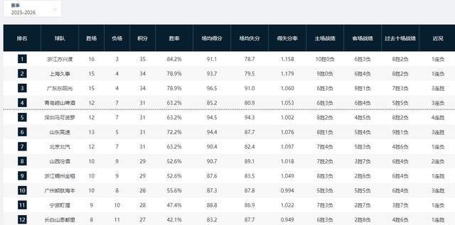 CBA最新排名!广厦遭爆冷榜首不稳,北京被挤到第7,上海杀回第2