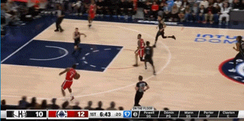 开场哈登的第一攻,就被克拉克斯顿帽掉