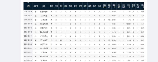 值得注意的是,王岚嵚本赛季状态起伏的情况已多次出现。第17轮对阵山西男篮,王岚嵚全场10中2,三分7中1;第14轮对阵青岛,他全场3中0,三分2中0;第13轮对阵广东,他全场9中2,三分5中0。这些数据可一定程度说明,王岚嵚本赛季的状态并不稳定。