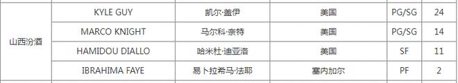 山西男篮的全新四外援阵容出炉,分别是迪亚洛、奈特、法耶与盖伊。