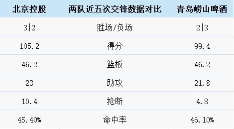 北京控股与青岛崂山啤酒历史上一共交手24次,青岛崂山啤酒15胜9负。