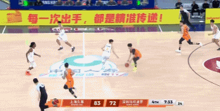 郑永刚无奈换回卡巴,深圳继续把球交给贺希宁处理,贺希宁延续火热手感靠个人能力里突外投再得7分(三节砍32分),但受困于白边内线的压制,深圳始终没能将分差缩小,刘铮飚进关键三分,白边抢下篮板再补扣,上海领先来到7分。