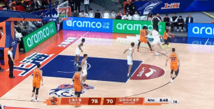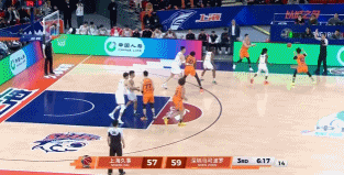 6分17秒,上海落后2分,卢伟重新换回白边,洛夫顿翻身跳投再得手,偰李永炜打进个人第3记中投,上海马上一波6-0反超深圳63-59。