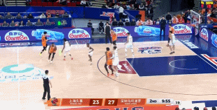 首节战罢,深圳勉强顶住了上海节末阶段反扑,27-23领先上海。