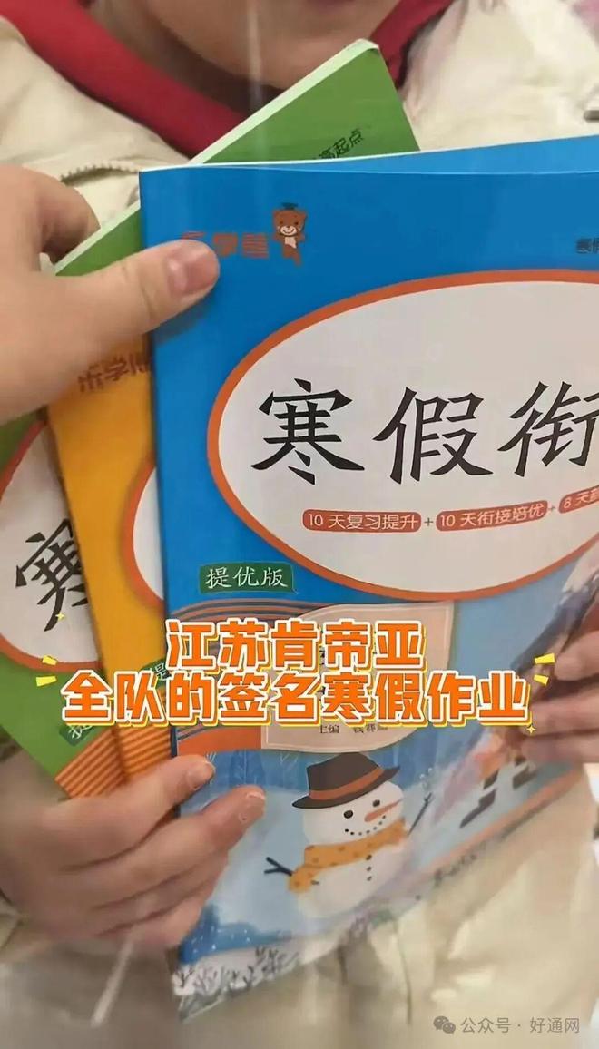江苏队为小孩哥送上全队签名的寒假作业