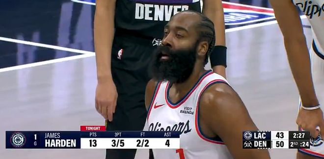 次节哈登终于找到了三分手感,就在快船一度落后打14分时哈登连续命中两个续命三分,这时候伦纳德还没在场上,哈登一人打停了掘金,哈登三分三连击后制造穆雷犯规,哈登从7中1觉醒,掘金主场球迷开始嘘他,半场打完哈登15分4助攻,小卡10分4助攻,科林斯13分3篮板。