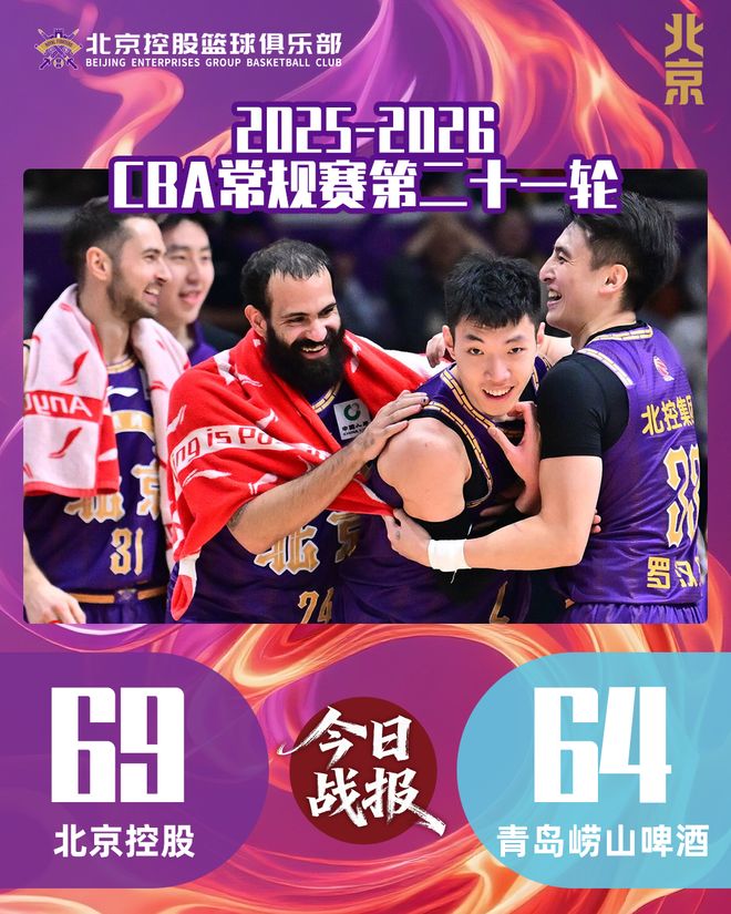 1月30日,北控男篮迎来农历年前最后一个主场,对阵青岛崂山啤酒。整场比赛双方陷入胶着缠斗,北控男篮凭借末节关键时刻的顽强反扑与稳固防守,最终以69:64力克对手,豪取三连胜。
