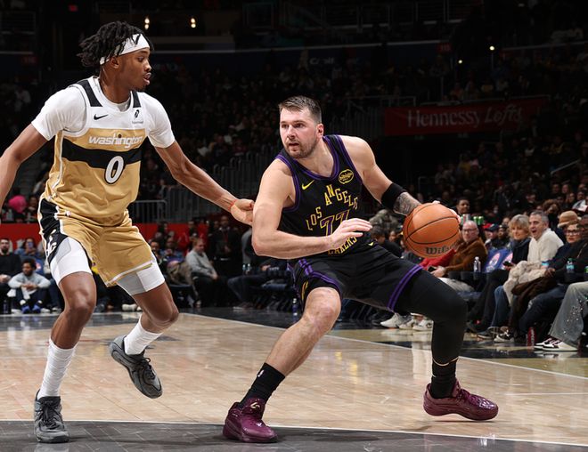 湖人客场挑战奇才,湖人少了里夫斯,奇才是背靠背作战(昨日击败雄鹿)且少了特雷杨、米德尔顿、巴格利、特雷约翰逊、惠特莫尔,就纸面实力而言他们远不如湖人,湖人优势巨大,很快取得大比分领先,一度领先38分,最终湖人142-111大胜奇才。东契奇21中13(三分13中6)砍下37分11板13助3断,艾顿14中12得到28分13板3助3帽,詹姆斯16中8(三分3中2)得到20分3板6助2断,奇才方面萨尔14中8得到16分6板5助2断、乔治12中5得到15分3板6助2帽。