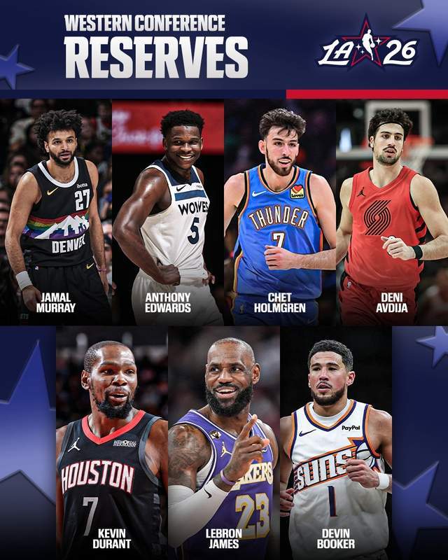 西部最终入选替补阵容的名单为:爱德华兹、霍姆格伦、穆雷、阿夫迪亚、布克、詹姆斯和杜兰特。这当中也都是值得一个名额的,只能怪西部的竞争太过于激烈,反观东部那边倒数第一步行者的西亚卡姆都能够入选,也是有些意外的。今年的全明星将在快船新球馆进行,可惜他们队内无人入选。