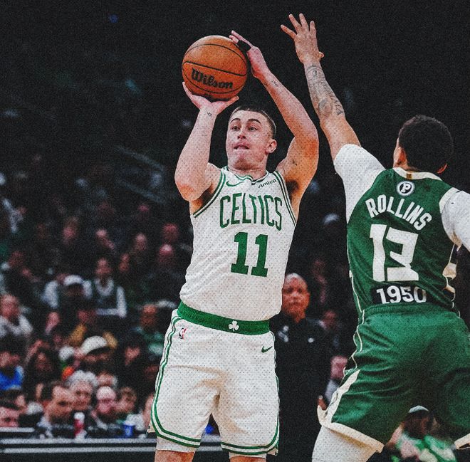 上一场缺阵的杰伦布朗,此役火线复出,不过前两节面对残阵的雄鹿,并没有太强的个人进攻欲望,上半场一共只出手了6次命中3球,仅仅得到了8分9板2助1断的个人数据,但是牵制雄鹿防守注意力之后,还是为队友创造出了大量好的出手机会,怀特和小西蒙斯早早得分上双,帮助凯尔特人半场战罢,就带着14分的优势,回到了中场更衣室。