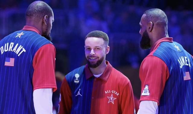 而在西部替补阵容当中,詹姆斯和杜兰特全都入选,这也意味着昔日的传奇球星詹杜库有望再次联手出战。上赛季的全明星三人就联手出战,这次分成2个美国队,而库里是首发,詹姆斯和杜兰特也都替补入选,相信联盟会为了更多的话题性让他们继续留在一队。另一个美国队则可以安排新生代,这样的安排还是挺有话题性的,具体分组名单将在本周三公布。