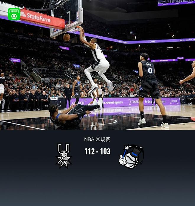 第四节马刺文班亚马拿下7分,魔术贝恩拿下7分,最终马刺112-103战胜魔术