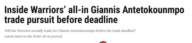 西格尔指出,勇士老板乔-拉科布与总经理小迈克-邓利维一致认为,为交易得到这位雄鹿球星,除斯蒂芬-库里外,球队阵中其余球员均可被纳入交易讨论。他还补充道,在交易截止日前的阵容升级计划中,字母哥是勇士的唯一目标。若截止日前无法达成交易,勇士计划保留队内最具价值的资产,待今夏再次尝试引进字母哥。