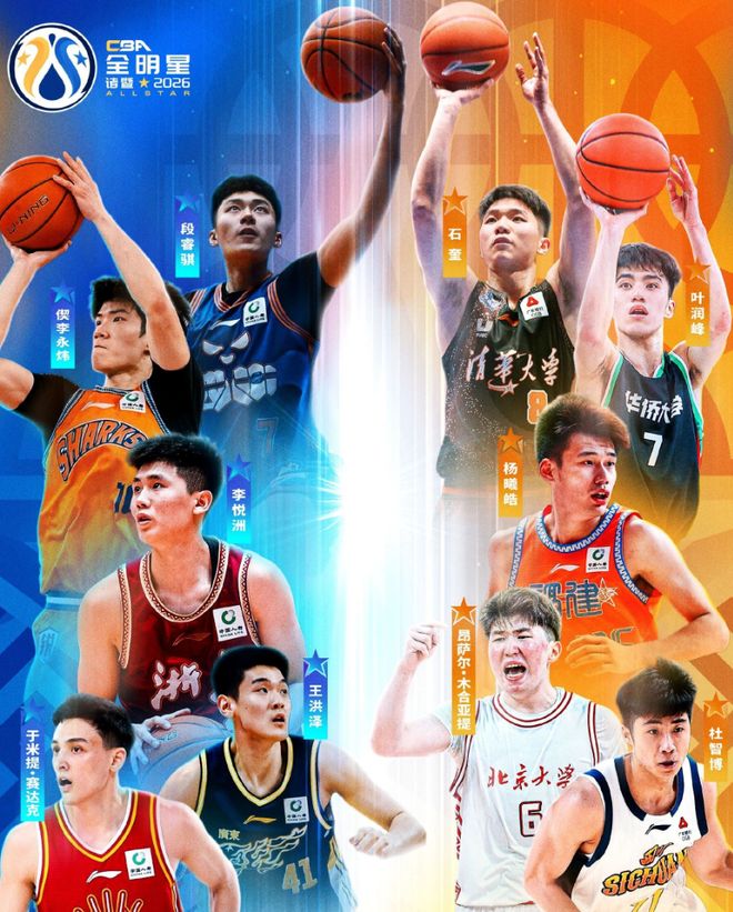 今天CBA全明星星锐赛的名单已经官宣了,CBA这边的大名单分别是袁照耀(广州),张陈治锋(辽宁),江林俊(北控),王洪泽、陈家政(广东),杨腾飞(吉林),于米提(山西),段睿骐(四川),谢智杰(山东),冯傲(新疆),李悦洲(浙江),偰李永炜(上海)。