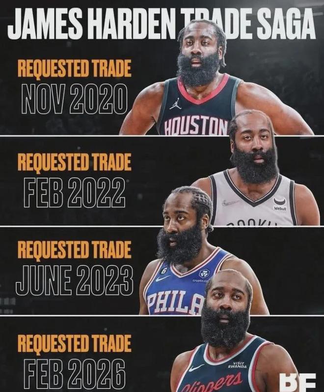 爆料王Shams:快船和哈登正在努力在今年交易截止日前分道扬镳......
