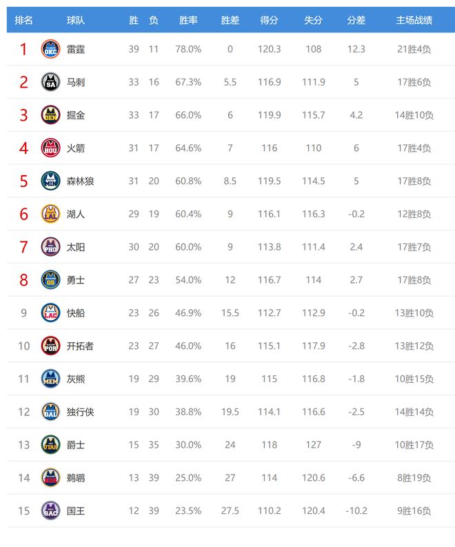 今日比赛后独行侠、灰熊排名互换,其他西部球队排名不变。