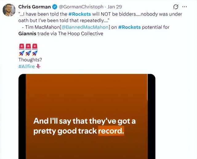 此话一出,直接让那些幻想火箭打包大把筹码拿下字母哥的声音全部安静。紧接着,布兰德·麦克马洪又一次为这个话题加了一把锁: