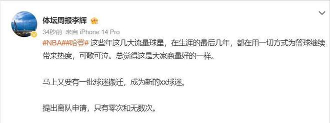 除了骑士,休斯顿火箭也被提及为潜在下家,引发了球迷关于哈登与凯文·杜兰特在火箭重聚的想象,无论最终去向如何,哈登本赛季的表现证明他仍有巨大影响力。