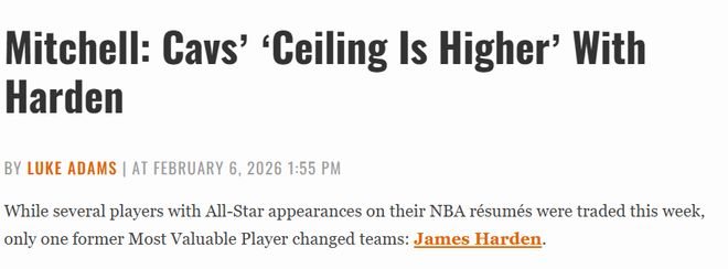 北京时间2月7日,据The Athletic记者托尼-琼斯以及《克利夫兰网》记者克里斯-费多尔报道,在快船与骑士正式达成交易的前一天,也就是当地时间周二晚间,哈登与米切尔曾进行过一次长谈。正是这次通话,让两位明星后卫确信,他们渴望成为队友,并且共同看好骑士的争冠潜力。