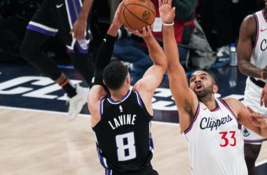本场比赛,双方在首发阵容上面,快船这边派出的是,邓恩,桑德斯,伦纳德,科林斯和大洛佩斯,国王这边派出的是,威少,拉文,亨特,德罗赞和雷诺。首节比赛开始,国王率先拿到球权,亨特顺步冲击篮下挑落两分,打进本场比赛首个进球,科林斯手腕一抖,补篮打进也为快船开张,伦纳德旋风冲刺,腾空上篮稳稳命中,雷诺的潇洒单手抛投同样也有,伦纳德:标志性的急停中距离干拔正入网心,拉文闪电突破,利用速度优势冲击篮下擦板命中,伦纳德又挤进篮下,强起暴扣技惊四座,拉文顶着防守飞身上篮还击一球。