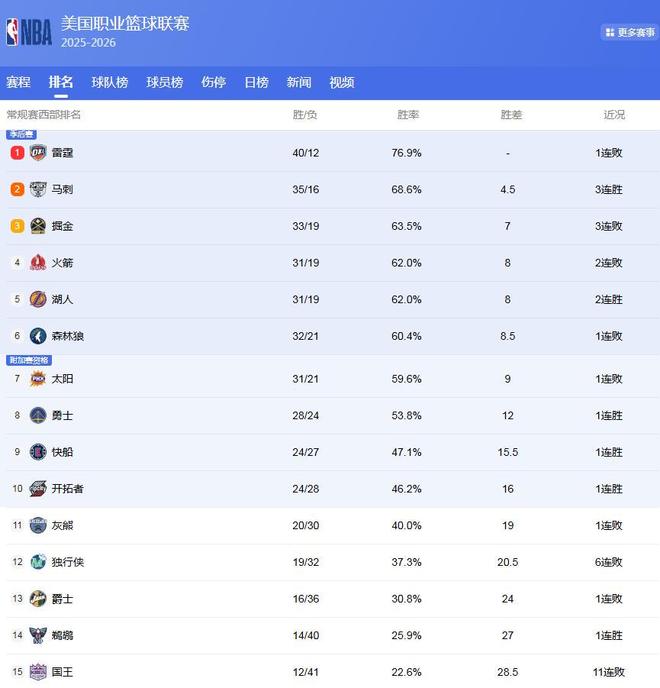 随着NBA25-26赛季常规赛赛程过半,NBA得争夺也是变得更加激烈,各支球队都开始为了更好地排名,开始了冲刺,这使得排名大乱,尤其是西部,竞争尤为激烈,各球队的排名随时都在发生变化,更可谓是乱!乱!乱!马刺冲第1,4队哄抢第3,快船翻身难了!