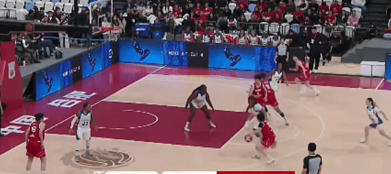 比赛开始后,中国队立刻打快攻,杨舒予带球突破,犀利拿分。目前的这支中国队,杨舒予是领军人物,能够打得分、组织后卫,也能够打小前锋,非常全面。宫鲁鸣指导对她的使用也是非常灵活。