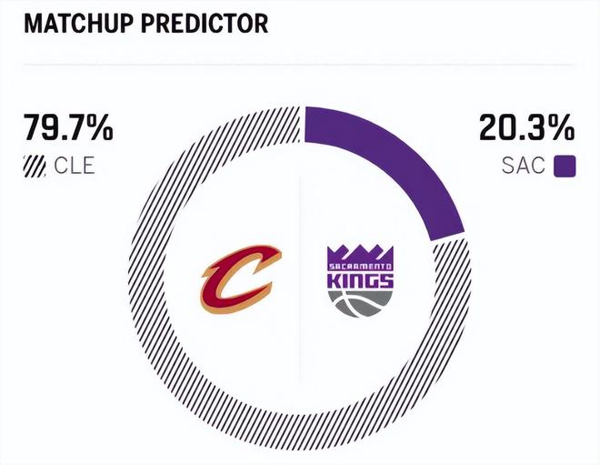 赛前,美媒ESPN对本场比赛进行了预测,骑士胜率高达79.7%,国王胜率仅有20.3% ,差距非常明显。