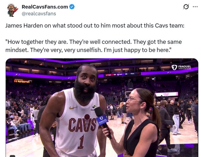 相比于击败联盟倒数第一的国王队,更加让骑士队开心的是哈登无缝融入球队,首秀低开高走拯救新东家。