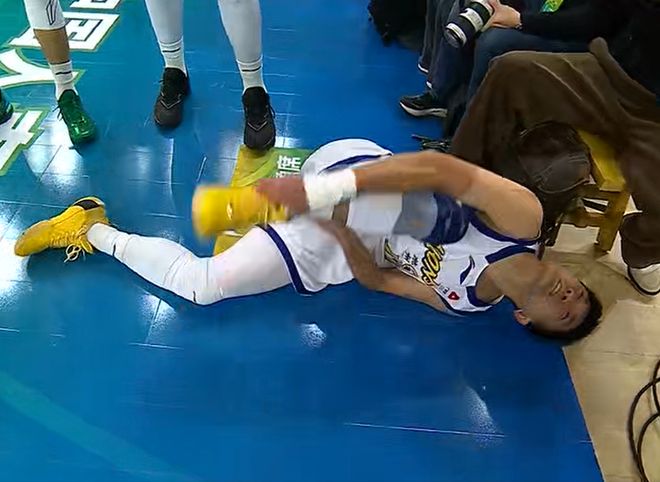 不过,广厦队除了输球之外,还有一件事,让王博十分揪心,没错,那就是球队主力后卫孙铭徽,在首节比赛受到了重伤。在第一节比赛,还有5分39秒时,孙铭徽在一次突破上篮的时候,突然崴脚了。