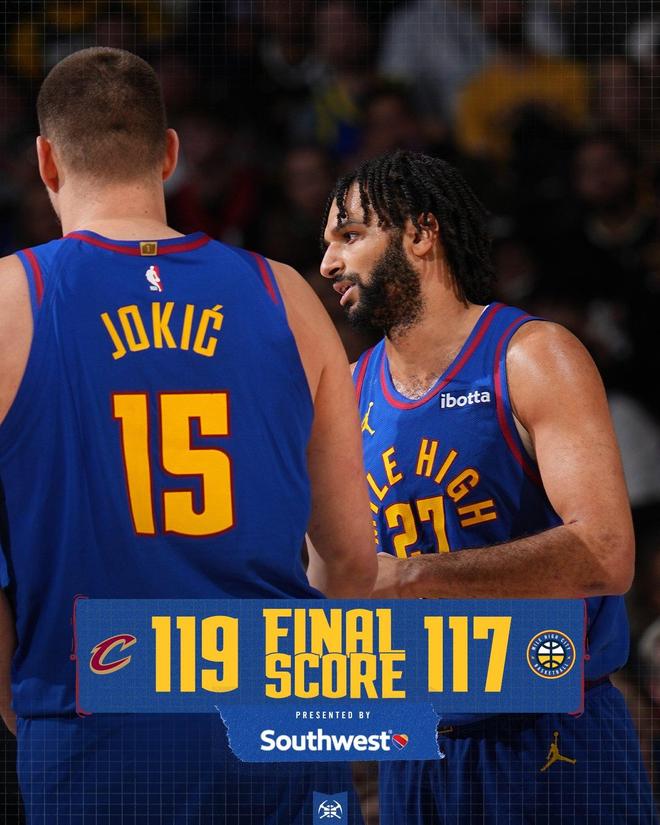 穆雷跳投不进,布朗抢下前场篮板,约基奇被犯规,阿特金森挑战判罚失败,约基奇2罚全中。米切尔助攻阿伦暴扣,约基奇抛投得分,但随后出现失误,哈登轰进倒地远投,小哈达威外线打铁,米切尔被穆雷犯规随后2罚全中,骑士反超2分。距离终场仅剩0.9秒,掘金请求暂停。约基奇单打米切尔不中,比赛时间走完。最终,克利夫兰以119比117险胜掘金,得以斩获4连胜。克利夫兰上演11分逆转好戏,米切尔贡献了准绝杀。同时,骑士已经连续2个赛季双杀了掘金。