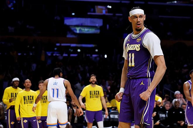 在此前的一场NBA常规赛中,俄克拉荷马城雷霆经过苦战后以119比110战胜了主场作战的洛杉矶湖人。本场比赛后,结束了两连败的雷霆的战绩提升到了41胜13负,继续排名西部榜首位置,与身后的圣安东尼奥马刺的胜场差为4场;而结束了3连胜的湖人的战绩则是下滑到了32胜20负,继续排名西部第5位,与身前的休斯顿火箭和身后的明尼苏达森林狼的胜场差均为半场。