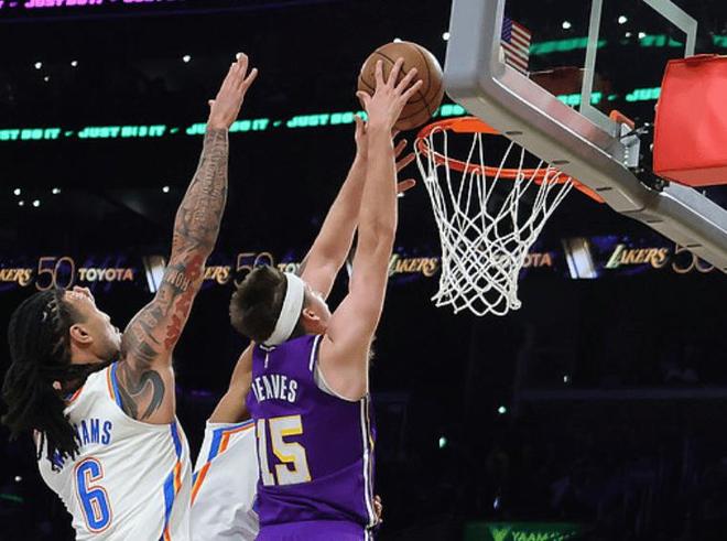 NBA常规赛,湖人坐镇主场迎击雷霆,西部焦点大战。本场比赛之前,湖人32胜19负排名西部第5,虽然近段时间湖人磕磕绊绊,里夫斯复出后,东契奇又受伤,但至少湖人战绩保持得不错,本赛季他们想拿到直通季后赛的门票,应该没什么大问题。由詹姆斯,东契奇,里夫斯组成的核心三巨头,进攻火力拉满,又引进了联盟第一射手肯纳德。另一边的雷霆队,本场比赛之前,40胜13负排名西部第1,虽然雷霆这段时间的统治力,没有赛季初那么强势,但他们仍是今年最大争冠热门之一,毕竟是卫冕冠军和联盟第一的战绩。