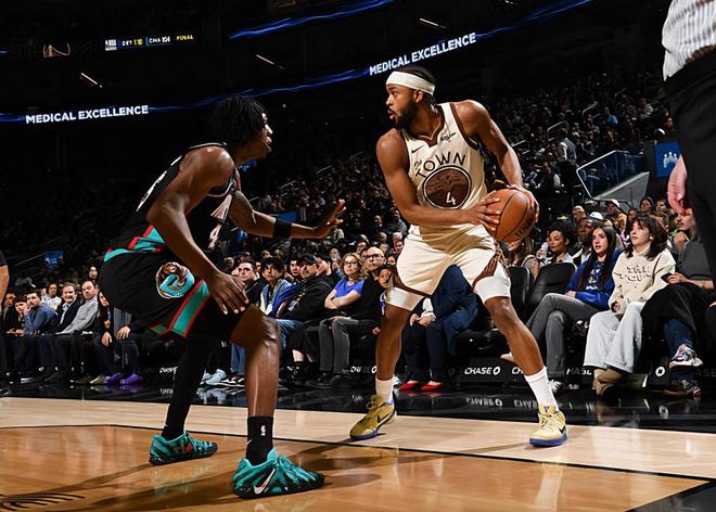 本场比赛中,勇士的先发侧翼新星摩西-穆迪(Moses Moody)的表现还是比较稳定的。穆迪全场出场27分41秒,投篮5中3,三分线外3中1,罚球9中8,得到了15分1篮板3助攻2抢断的数据,还有3次失误和1次犯规,正负值为-8。穆迪在进攻端并没有进行更多的出手,但是他还是保持了稳定的手感,而且他还通过自己的经验利用罚球得到了不少分数。除此之外,穆迪在传球和策应方面也是起到了一定的作用,而且他在防守端的表现也是相当突出的。穆迪在场上时球队的局面比较一般,但是这其实也和个别球员的糟糕表现密切相关。从穆迪本人的角度来看,他已经算是充分发挥出了自己的特点了。